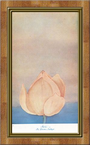In the nuclei of the atoms we are in awe of Her mighty power, in the bud of humility we wonder at her soft retreat, in the fragrance of flowers we inhale Her aroma, in the sound of the organ we are awakened by Her velvety touch of our heartstrings. At the touch of Her feet we feel the heartthrob of earth. In the green waters of the sea we take a plunge, a deep plunge in the bottomless depths of Her compassionate eyes. In the white lotuses of the pond She is present as Aditi, the consciousness and the force of the Supreme, and far above all She creates. She is That—the Mother of all the gods and goddesses sustaining the universe, the beauty, the truth and the consciousness, Satchidananda.